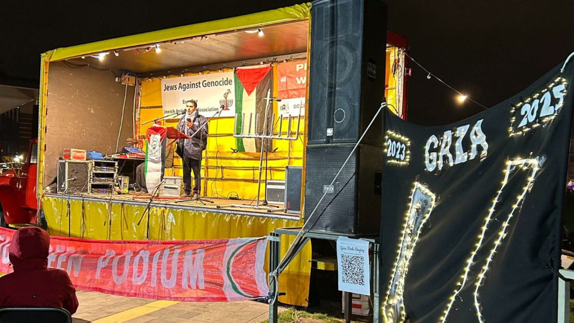 Palestinian activist Badee Dwaik, founder of the Human Rights Defenders Network, participated in a protest vigil in Amsterdam against cultural events featuring the chief cantor of the Israeli army.